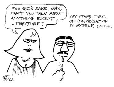 Keith said that Tom Clancy was doing a reading and that Keith was in a front page article in the Post. Is anyone driving to WorldCon. Someone suggested he get a ride from Thelma and Louise. Mike Walsh said that guerilla marketing has gone ape with an ad for the Locus award winning Being Gardner Dozois. He wants people to distribute copies of the ad to bookstores and insert them into copies of World's Best SF. Lee was shocked. "Oh my God, he's telling us where to stick it."