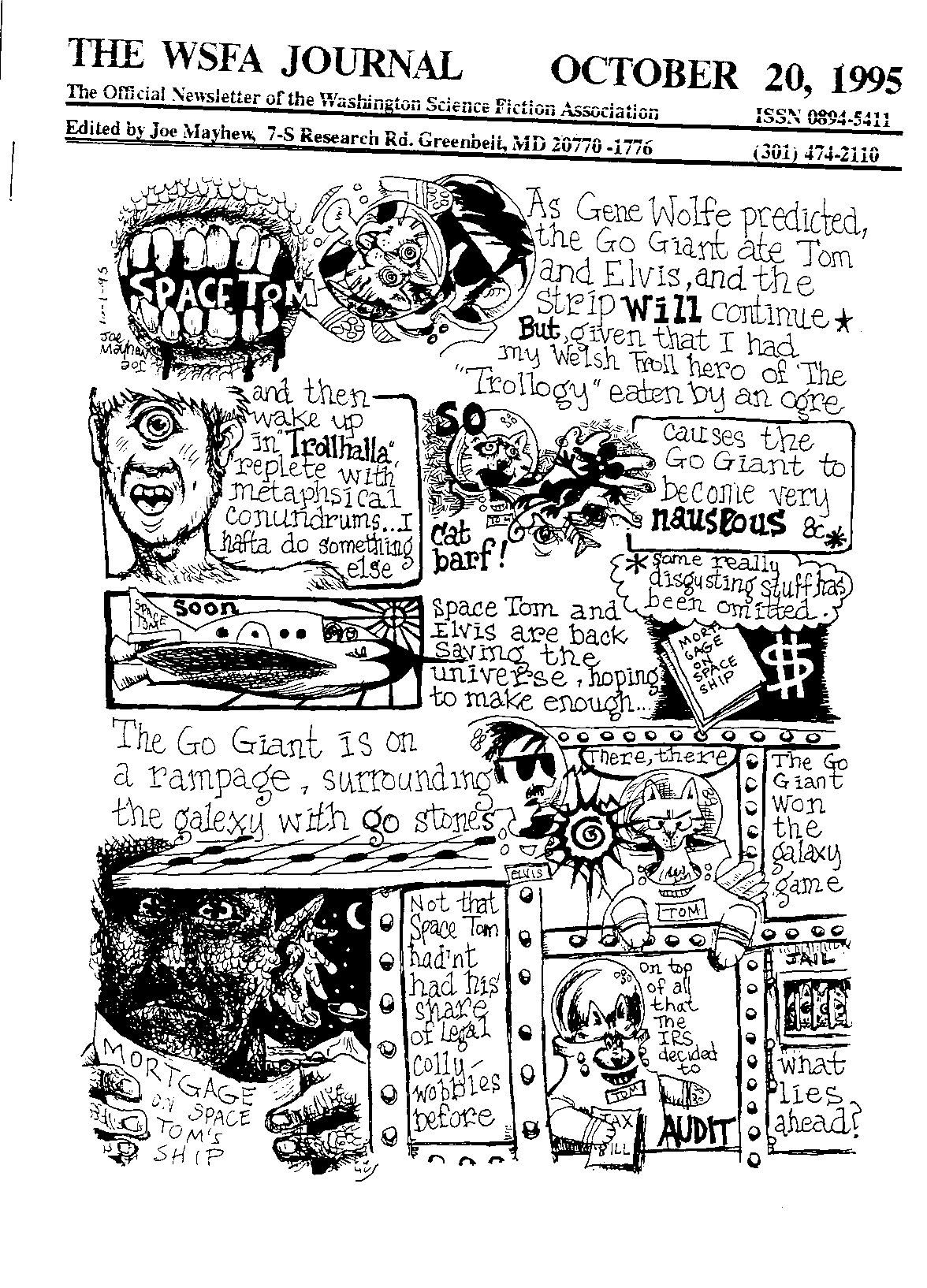 The 1998 World Science Fiction Convention will be in Baltimore, chaired by WSFAn Peggy Rae Pavlat. While many WSFAns will be helping to make it a success, it is not a WSFA function. Address: